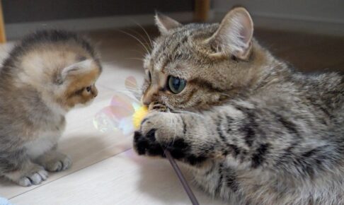 「パパ、もっと遊んでニャ!」と一生懸命にアピールするスプライトくんの姿に、世界中から「天使すぎる」「癒やしの塊」といった絶賛の声が寄せられています。