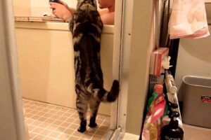 飼い主さんがタイピングをしようとすると、子猫は「ボクと遊んで!」と言わんばかりに、キーボードの上でゴロゴロと毛づくろいを始めてしまいました。