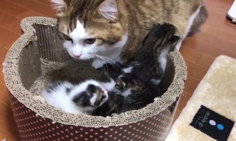 【悶絶】「ボク、もうお外に行けるニャ!」箱から脱出しようと一生懸命な子猫ちゃん。見守るママ猫の“優しい眼差し”に心が洗われる……!