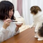 最後にはお母さんの隣で満足げな表情を見せる子猫。何気ない日常の一コマですが、親子の絆がたっぷりと詰まった癒しの時間をお楽しみください。