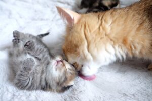 夜のリビングでは、猫ちゃんたちがワチャワチャと小さなプロレス大会。