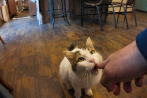 お父さんが仕事に行こうと準備を始めると、オデコちゃんは「どこへ行くの?」「ボクも一緒にいたいニャ!」と言わんばかりに、お父さんの肩の上にぴょん! そのまま離れようとせず、お父さんの首元にすり寄ったり、甘えた声で鳴いたりと、全力で引き止め作戦を開始します。