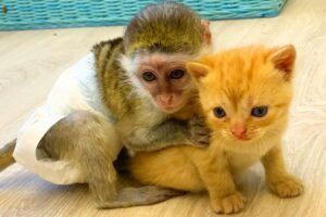 「ボクが守ってあげるニャ!」小さなヒヨコたちを優しく包み込む、子猫ちゃんの大きな愛
