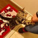 結局、お散歩の準備をそっちのけでリクくんのそばに駆け寄り、優しく見守り始めてしまいました。お散歩よりも子猫への愛が勝ってしまう、その優しさに胸が熱くなります。