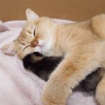 端を寄せて、自分の体にちょうどいい位置に整えると、満足そうにもう一度もぐり込んで二度寝。動画の前半は、布団の中で丸くなったり、片足だけ外に出してみたりと、寝相の変化も楽しめます。