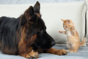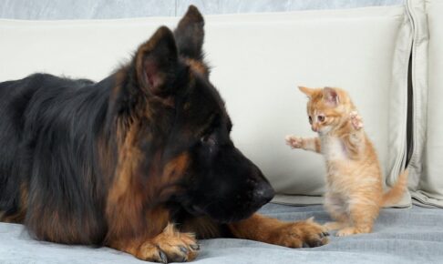 そして前足を少しあげて赤ちゃん猫をさわろうとしているのですがなかなか決心がつかないようすで、何度も前足をあげては下げてをくりかえしています。触ってみたいけど勇気がでない。そんな様子がとてもいじらしいです。