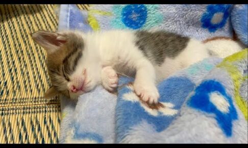 一見心地良さそうなベッドですが、家具の上なのでもちろん柵もありませんから寝返りをうったりしたらあっという間に落下ということになってしまいそうです。大丈夫でしょうか。飼い主さんがカメラを顔の方に近づけて撮影をしはじめたらキラっと目が開いてしまいました。