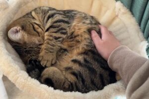 天気が良いのでお外にお散歩に連れ出してもらったようです。キャリーを開けて外に出そうとしますが、臆病なのかなかなか外に出ようとしません。すでにどっしり構えている白いふっくら猫さんはお外に慣れているのかとても落ち着いています。