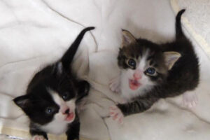 子猫は元気に遊んでいますが、まだまだ骨張った体つきでひょろひょろに痩せています。でも今は保護されたお宅でたっぷり食べて少しずつ体重も増えてくれるでしょう。