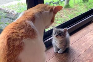 見守る視線もとても暖かくて優しいです。暫く見ていると何と子猫も顔を出します。実はお母さん猫だったのです。種族を超えた子育てを行う様子に母の偉大さを感じます。