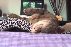 撮影者さんがその中の1匹の猫に近づき、カメラをズーム。口を半開き状態にして、気持ちよさそうにすやすやと眠っている表情が無防備で、なんとも愛くるしいです。