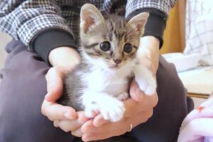 毛布の上にポツンと取り残されてしまった子猫が不憫です。でも子猫本人は全く気にしていないようでへっちゃらのようです。