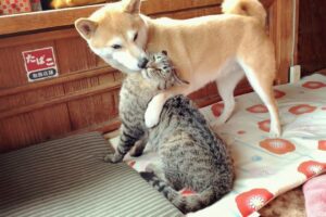 猫は背中の上にいると落ち着けないのかソワソワしてそうな感じですが、まわりのことに興味を示しているようにも感じるものです。