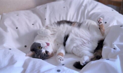 ところが、ゴールデンの顔のすぐそばまでモゾモゾしながら近づいてきた子猫が気になって眠れなくなってしまいました。
