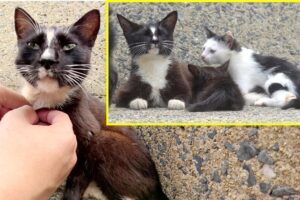 アメリカンカールのお父さんのもすけと、お母さん猫のたん子の間に挟まれて立っている子猫のめいが不運にも亡くなってしまったようです。