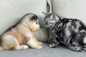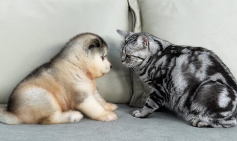 猫をお母さん鶏と勘違いしているひよこたち