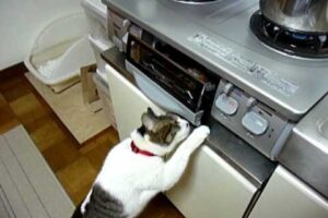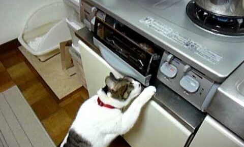 ごはんが待ちきれない子猫たちがパパのまわりでソワソワ