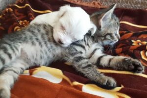 子猫たちのための部屋のなかで、兄弟でまったりと過ごしています。ホワホワとした毛に覆われた子猫たちは、どのこもとびきりのかわい子ちゃんばかりです。
