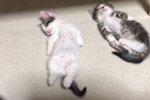 寝床の中だけを動きまわる赤ちゃん猫ですが、もう少ししたら寝床の外の広い世界もその目で見つめることができるようになるのでしょう。