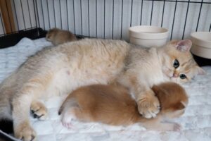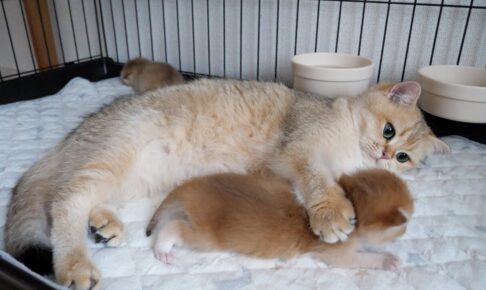 猫は、気づいてもらいたくてウジウジしながら控えめにニャーと鳴いて気を引こうとしますが、お父さんはなかなか気づきません。