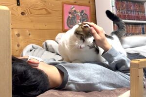 子猫たちはみんな一様にしっぽをまっすぐに立てているので、シェパードに対してすでに心を開いているのは間違いなさそうです。