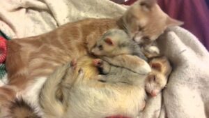 【優しく抱きしめる!】母猫が赤ちゃん子猫を「そっと抱く」究極の母性愛に癒やされる!