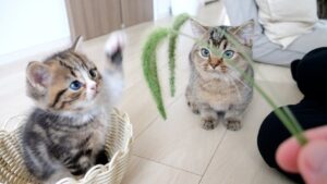 【夢中になる!】リアルな猫じゃらしに大興奮!子猫たちの「遊びスイッチ」全開バトル!