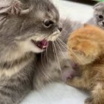 【ママの枕は渡さない!】ご飯後の至福の時!子猫が枕を占拠して「返してくれない」可愛すぎる光景!