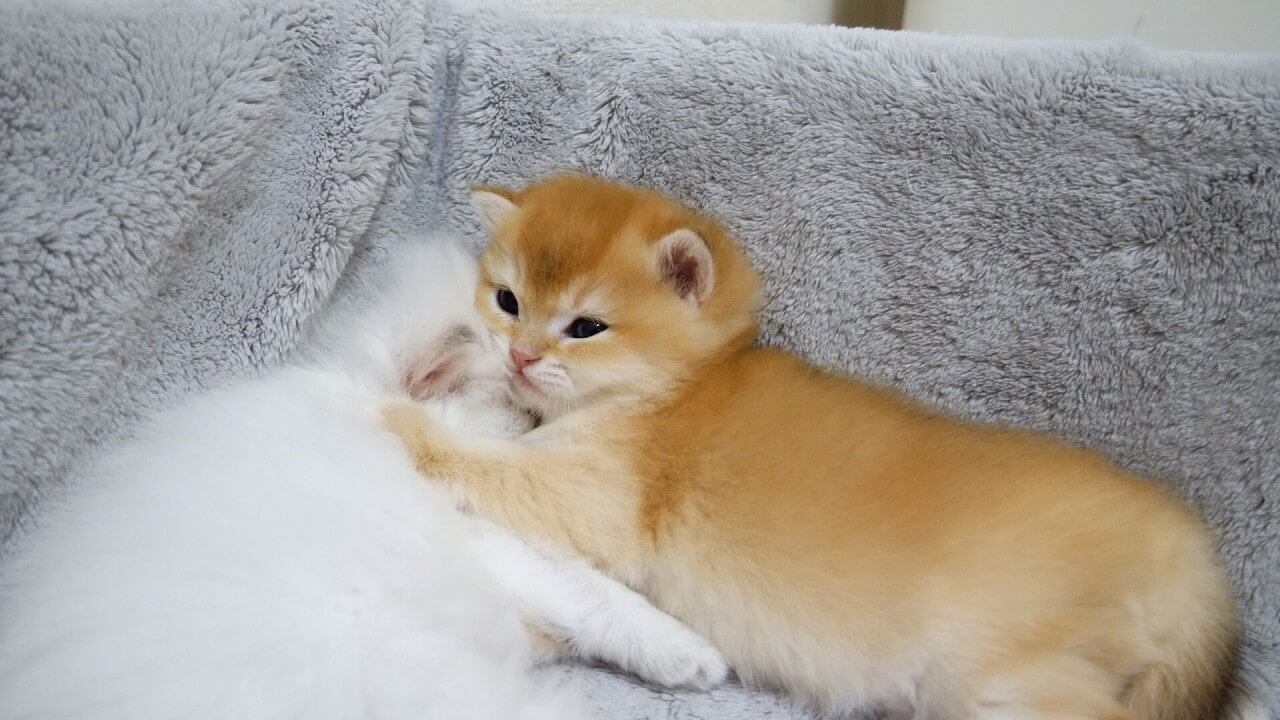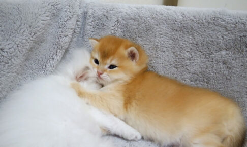 兄弟の温もりと感触が、子猫ちゃんにとっての最高の安心材料。他の兄弟が移動しても、寝ぼけ眼で必死に追いかけ、再びベストな「くっつきポジション」を探して体を寄せ合う姿は、可愛すぎて悶絶必至です。