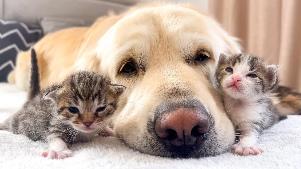 【子守犬誕生!】ゴールデン・レトリーバーと「赤ちゃん子猫たち」の心温まる日常!