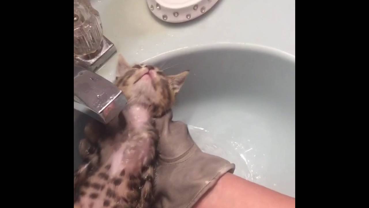 野良子猫の「初めてのお風呂」!震える身体と必死の抵抗が愛おしい!