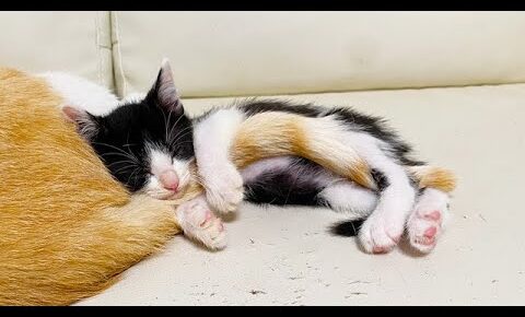 【自分のしっぽで熟睡!】しっぽを「ぎゅっと抱きしめて」寝る子猫!究極の安心感!