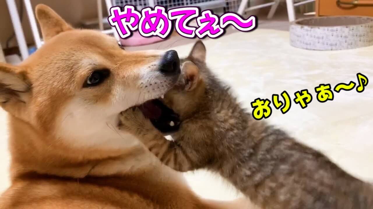 今回ご紹介するのは、「R村の柴ねこ」チャンネルから、なんと柴犬の口元に小さな子猫が顔を突っ込むという、驚きと感動の異種交流動画です!