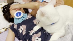 【感動】高熱で寝込む娘を片時も離れず看病!白猫トコちゃんの優しさに涙が止まらない!