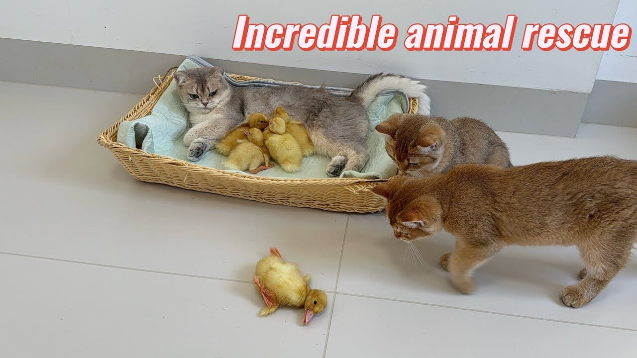 動画のタイトルは「It’s so rare! Two kittens worked together to save the duckling twice! It’s so touching.Mother duck👍」。映し出されるのは、2匹の子猫が力を合わせ、アヒルのヒナを2回も助け出すという奇跡のような光景です。