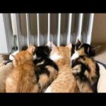 先住猫が立ち上がって別の場所に移動しようとしても、子猫は必死になって追いかけ、すぐにまたピタッと密着!その健気な「離れたくない」アピールは、見ているだけで心が温まる究極の癒やし。種を超えた深い絆を感じる、至福の4分間です!