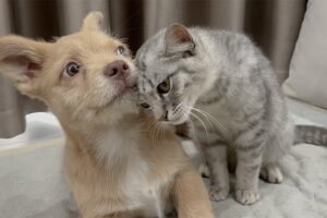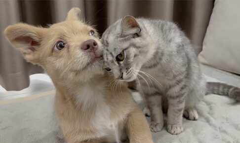 【離れたくない!】子犬が逃げないよう「ぎゅっと抱きしめて寝る」猫!感動の添い寝!