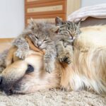 特筆すべきは、その寝姿。自分の小さな前足を折りたたみ、まるで**「ふかふかの子猫専用枕」**であるかのように、その上にちょこんと頭を乗せて眠っているのです。顔を隠すようにして丸まり、全身から「安心」と「安らぎ」がにじみ出ている様子は、まさに天使の寝顔。