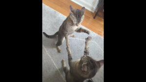 「まるでボクシング!?」猫2匹が魅せた 人間そっくりの”立ち技”ガチバトルに8800人が爆笑!