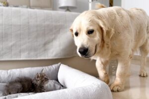ハスキー犬がうとうとと寝ていると、猫はその温もりとフワフワな毛を最高のベッドとばかりに利用します。ハスキーの背中にぴったりと寄り添い、安心しきった表情で丸まって眠る姿は、見る者の心を和ませます。