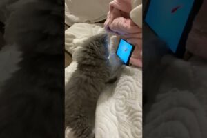 動画に登場する小さな子猫は、飼い主さんのスマートフォン画面に夢中です。画面に映し出されているのは、猫が大好きなお魚たち! 子猫は、これが本物の獲物だと信じ込んでいるようで、真剣な眼差しで画面を見つめます。