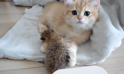 最初は少し緊張気味だった子猫を、ゴールデンレトリバーはまるで自分の子供のように優しく見守ります。驚くべきは、その穏やかすぎる「接し方」。大きな体で子猫を包み込み、ゆっくりと鼻先を寄せて愛情を伝える姿に、種族の壁は一切感じられません。