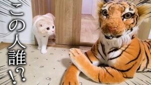【爆笑】「えっ、家にトラがいるニャ!?」リビングに突如現れた“巨大なトラ”に、子猫とワンコが見せた反応が120点すぎると話題!