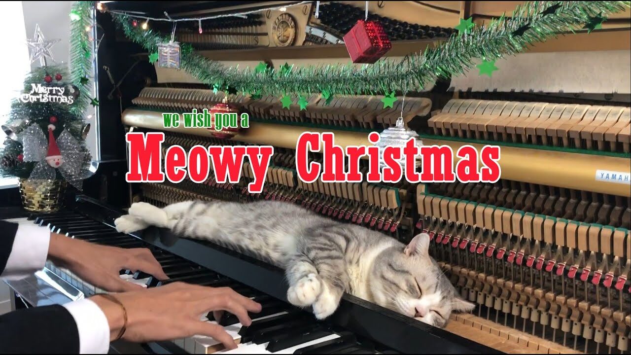 流れてくるのは、おなじみのクリスマスソング「We Wish You a Merry Christmas」。飼い主さんの指がHaburuくんの体を優しく撫でるように鍵盤を叩くたび、まるでピアノマッサージを受けているかのようなうっとりとした表情を見せてくれます。