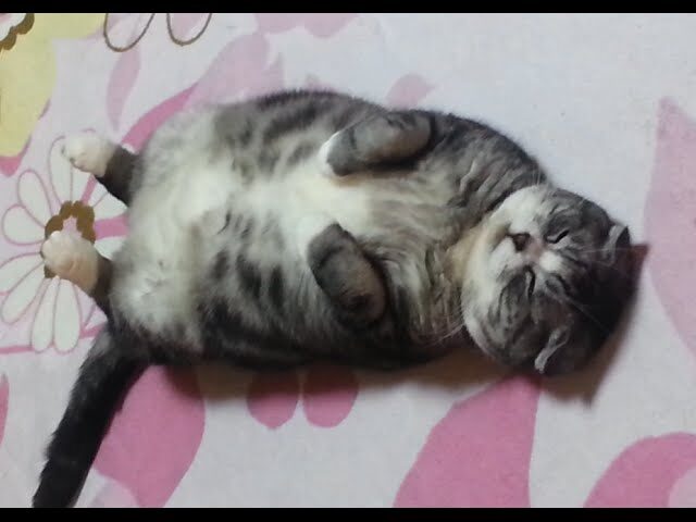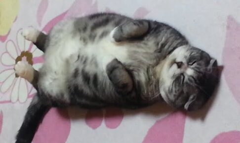 【仰天】「中に人が入ってる?」野生を完全に忘れたスコティッシュフォールドの寝姿が面白すぎる!