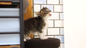 【悶絶】「まだかニャ〜?」ご飯の準備が待ちきれなくて、キッチンまで覗きに来ちゃう子猫ちゃんが可愛すぎて仕事にならない!