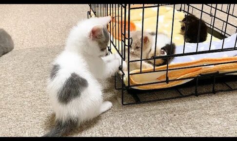【悶絶】「えっ、だれ……?」初めて見る“ちっちゃな命”にドキドキ!新入り赤ちゃん猫に興味津々な子猫たちの“神対応”に癒やされる!