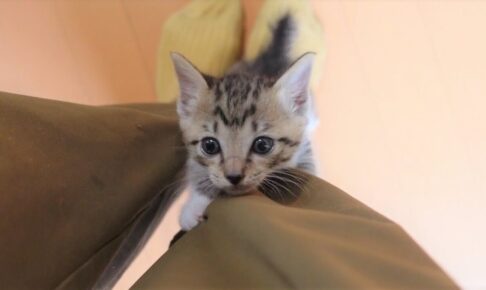 今回の主役は、生後32日を迎えたばかりの小さな子猫ちゃん。どうやらお腹がペコペコのようで、飼い主さんが準備を始めると、もうじっとしていられません。「早く、早く!」と言わんばかりに、飼い主さんの体にぴょんと飛びついて登り始めるという、必死すぎるおねだりを披露してくれたんです!