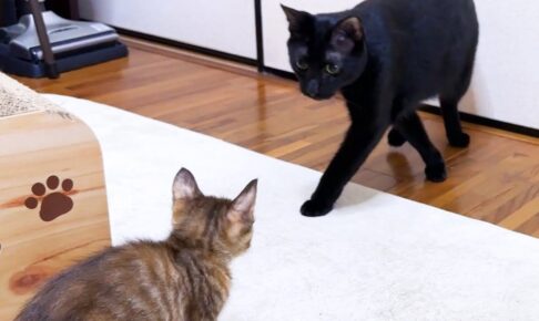 今回の主役は、元気に家を駆け回るわんぱく盛りの黒猫「リキ」くん。いつもは末っ子として甘えん坊全開のリキくんですが、この日は特別な日。なんと、新しい家族として迎えられた2匹の子猫ちゃんたちと初めて対面することになったのです!