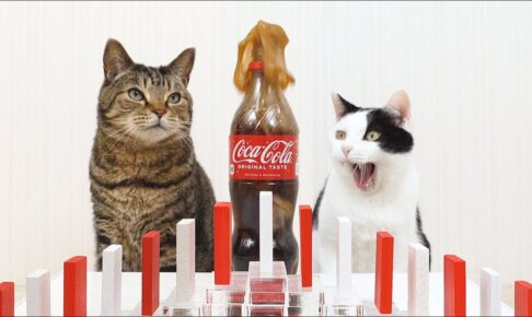 【驚愕】「これぞ神業ニャ!」ドミノを倒さず迷路を抜ける猫ちゃん。ラストに待ち受ける“コーラ爆発”とのギャップに癒やされる!